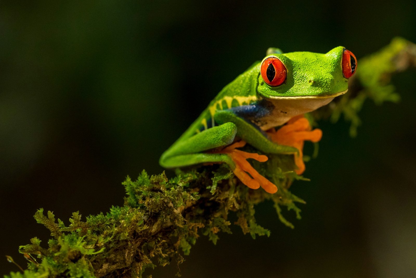 | Frosch | Roter Rotaugenlaubfrosch | Agalychnis callidryas | Regenwald | Leuchtend grün mit roten Augen |